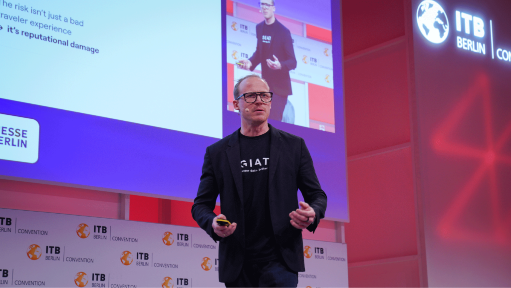 On the afternoon of the third day, our CEO Mathis Boldt took the stage at the ITB Berlin Convention’s eTravel Stage. His keynote focused on one of the biggest topics currently shaping the industry: AI in travel technology. But instead of focusing on hype, he talked about the foundation behind it.